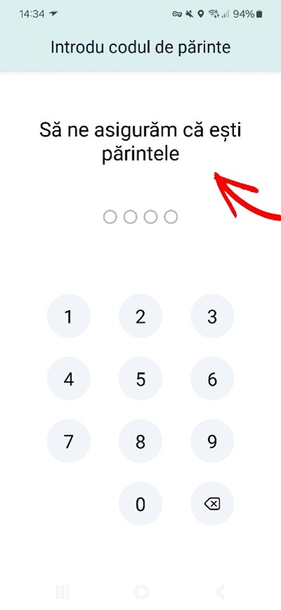 Pasul 2: Activează Modul Părinte introducând codul PIN