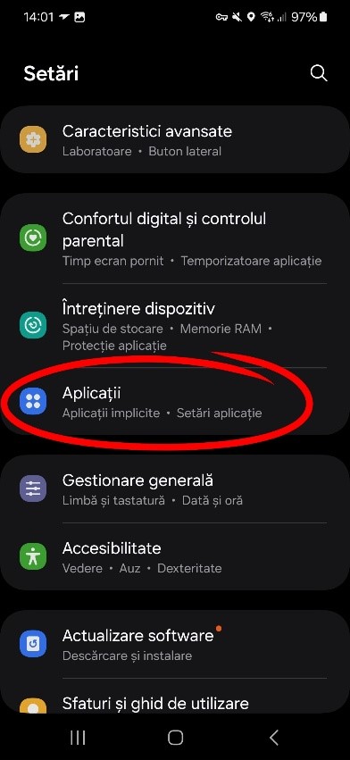 După ce Modul Părinte este activ, accesează: Setări > Aplicații